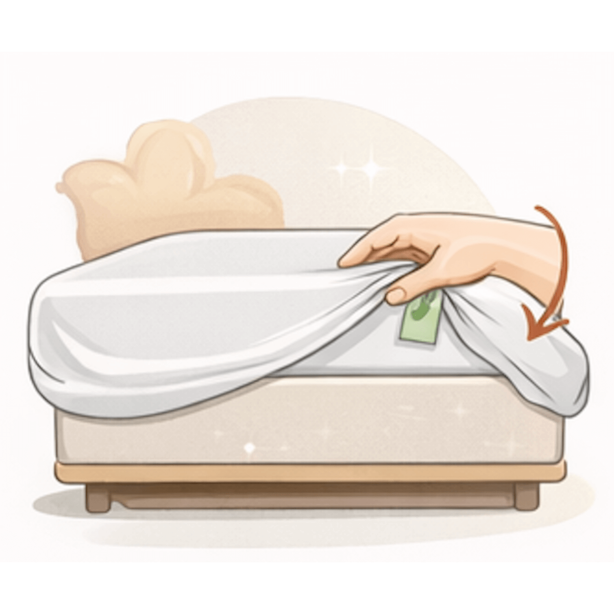 Ziehen Sie das Spannbettlaken mit dem Gummi fest nach unten Richtung Matratzenmitte.