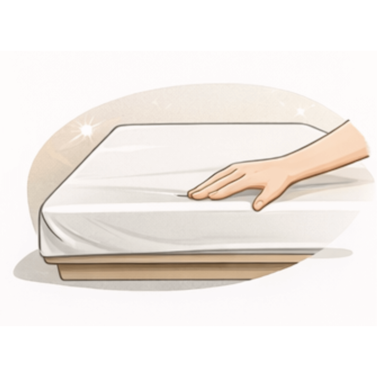 Ziehen Sie das Bettlaken von der Mitte aus straff unter die Kanten, um die Ecken faltenfrei glatt zu streichen.